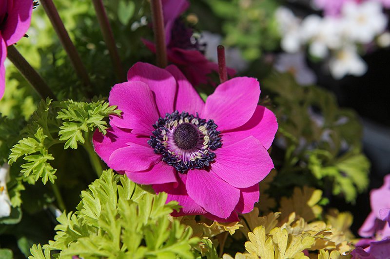 Harmony Orchid Anemone is smothered in stunning semi-double purple buttercup flowers with hot pink overtones and black eyes at the ends of the stems from early spring to mid summer. The flowers are excellent for cutting. Its ferny leaves remain green in color throughout the season.