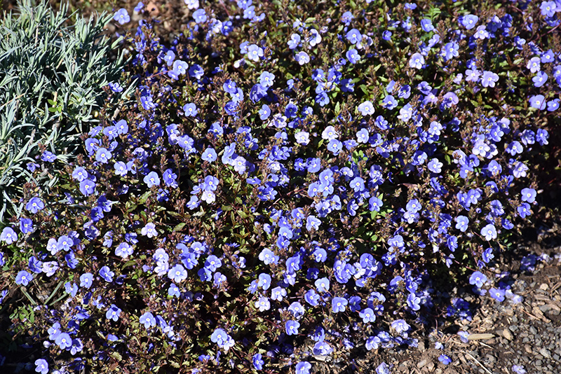 Georgia Blue Speedwell will grow to be only 4 inches tall at maturity extending to 6 inches tall with the flowers, with a spread of 24 inches. When grown in masses or used as a bedding plant, individual plants should be spaced approximately 18 inches apart. Its foliage tends to remain low and dense right to the ground. It grows at a fast rate, and under ideal conditions can be expected to live for approximately 10 years. As an herbaceous perennial, this plant will usually die back to the crown each winter, and will regrow from the base each spring. Be careful not to disturb the crown in late winter when it may not be readily seen!