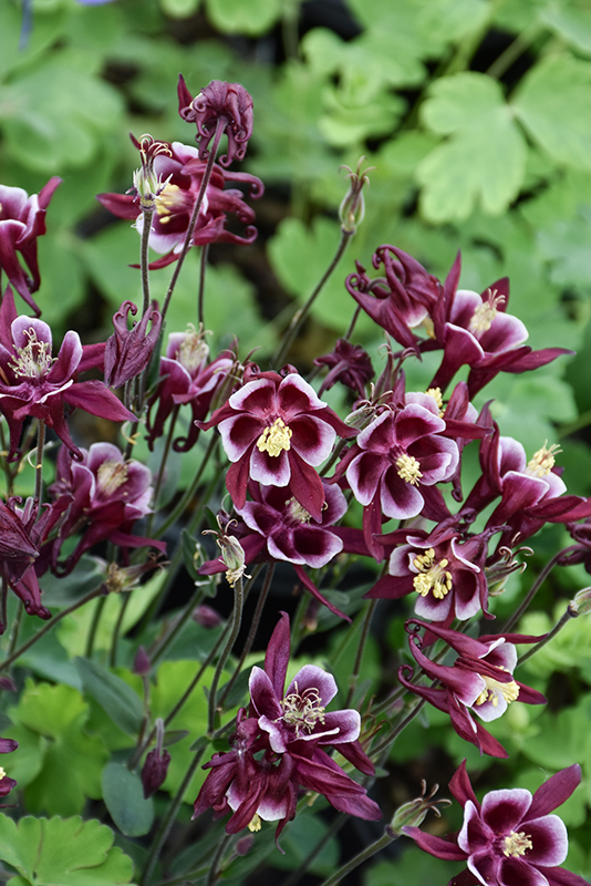 Winky Red And White Columbine features showy double red bell-shaped flowers with white overtones and buttery yellow eyes at the ends of the stems from late spring to early summer, which emerge from distinctive burgundy flower buds. The flowers are excellent for cutting. Its lobed compound leaves remain green in color throughout the season.