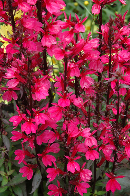 Starship™ Deep Rose Lobelia features showy spikes of rose flowers rising above the foliage from mid summer to early fall. The flowers are excellent for cutting. Its pointy leaves emerge burgundy in spring, turning green in color with prominent coppery-bronze tips throughout the season.