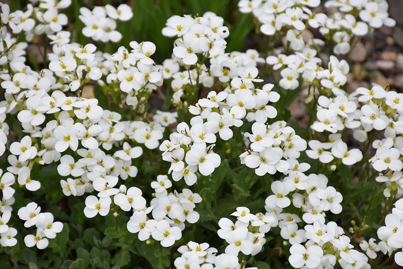 Snowcap Wall Cress will grow to be only 6 inches tall at maturity, with a spread of 12 inches. Its foliage tends to remain low and dense right to the ground. It grows at a slow rate, and under ideal conditions can be expected to live for approximately 8 years. As an evegreen perennial, this plant will typically keep its form and foliage year-round.