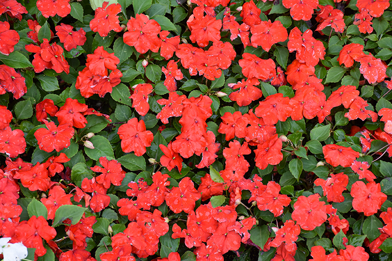 Beacon® Bright Red Impatiens will grow to be about 15 inches tall at maturity, with a spread of 12 inches. When grown in masses or used as a bedding plant, individual plants should be spaced approximately 8 inches apart. Its foliage tends to remain dense right to the ground, not requiring facer plants in front. This fast-growing annual will normally live for one full growing season, needing replacement the following year.